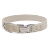 This collar has a premium look and feel, while being easy for you to maintain. Made from Ultrasuede® fabric with the soft texture and feel of premium suede. Ultrasuede® offers the highest grade of durability, making this collar resistant to stains and discoloration, it is even machine washable! This collar captures effortless convenience in fastening with a quick-release buckle, please note this feature has no adjustments so take care to make accurate measurements in finding the perfect fit for your dog. We recommend your dog should always be walked with a harness. Our collars are designed for ID tags, charms and for decoration, they are NOT designed for pulling dogs. Collar width is ½”. Manufactured in the USA